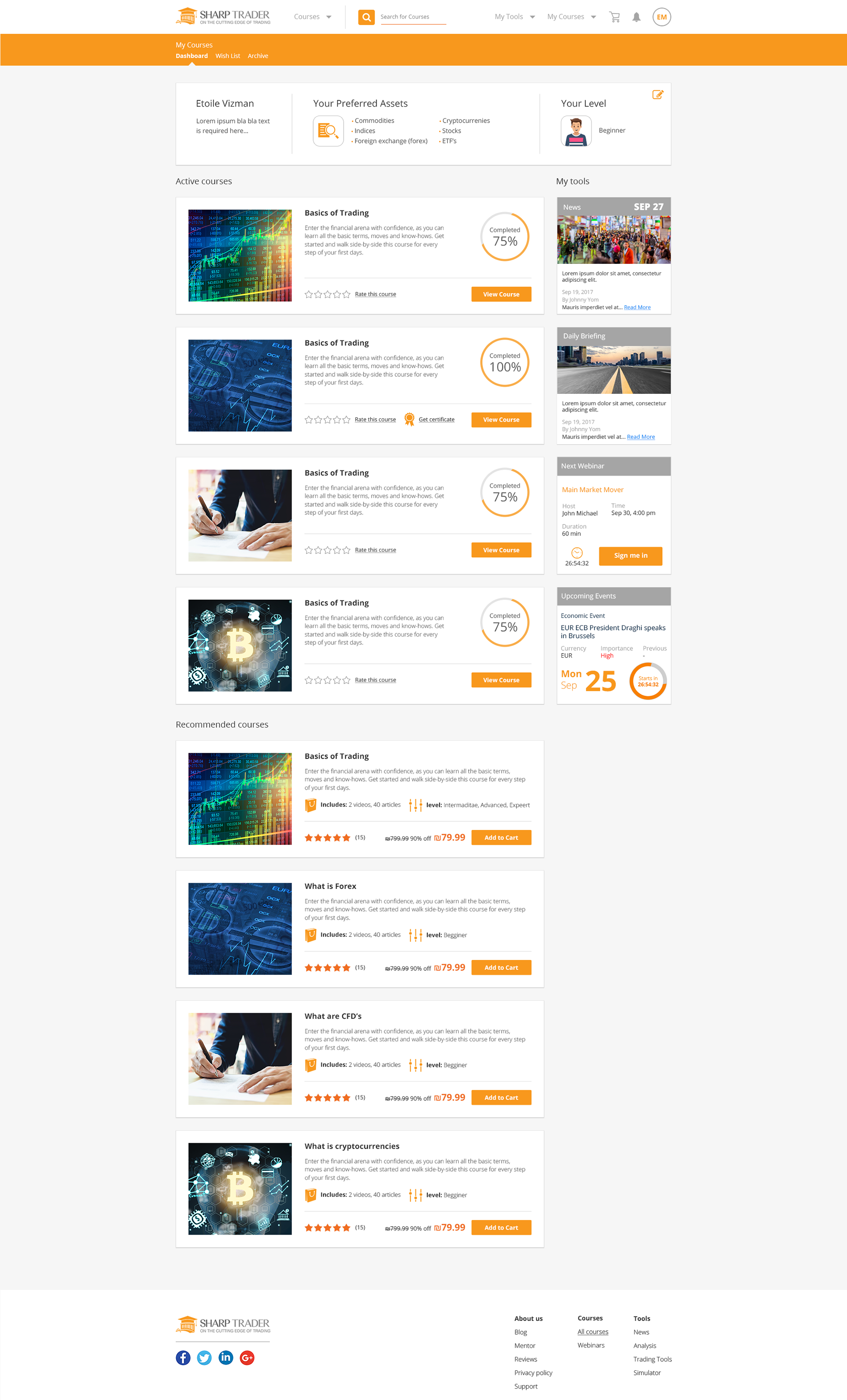 UX UI Trading Courses Website - Dashboard